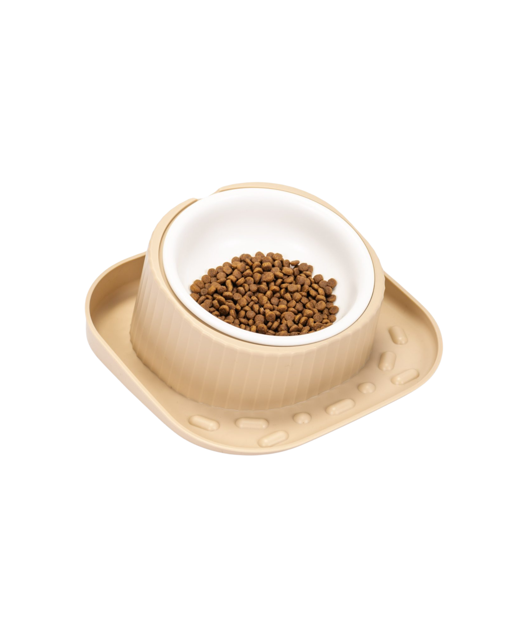 Este comedero y bebedero para mascotas anti derrames cuenta con un bowl de cerámica ligeramente inclinado, diseñado para evitar que los alimentos se derramen. Su base de polipropileno recoge los restos y protege el piso, además de eliminar el sonido del impacto al caer los alimentos. Perfecto para mantener el área de alimentación limpia.
