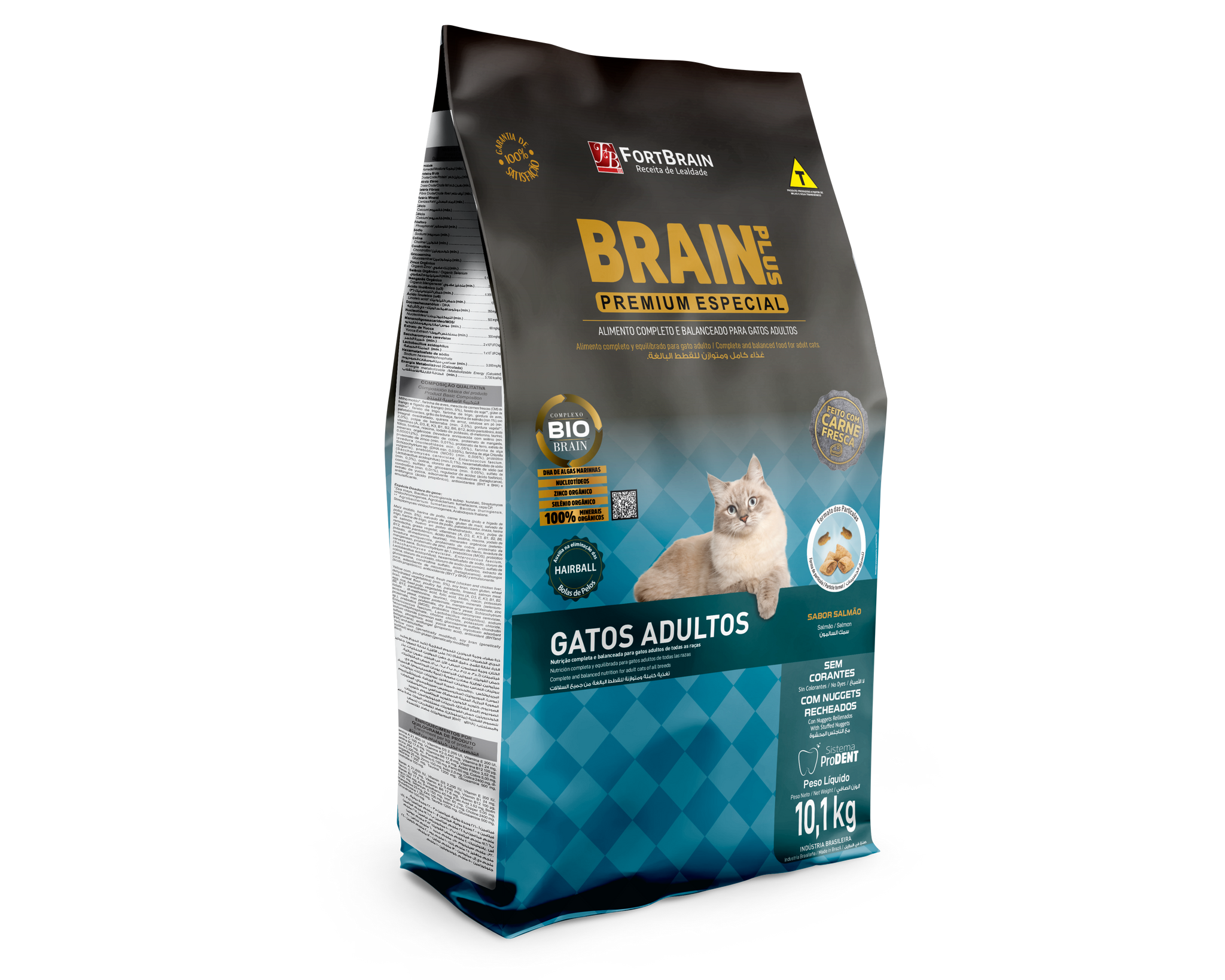 Pensando en la calidad de vida de tu gato, Brain Plus Premium Especial Gatos Salmón es un alimento completo y equilibrado que fue especialmente desarrollado con ingredientes rigurosamente seleccionados, con el fin de satisfacer el paladar de los gatos más exigentes. En su desarrollo se incorporaron los más avanzados conceptos de nutrición y alimentación de gatos. Con la excelente nutrición energética, proteica, vitamínica y mineral que contiene Brain Plus Premium Especial para Gatos Salmón, tu gato recibirá todo lo que necesita para una vida cada vez más feliz y saludable.