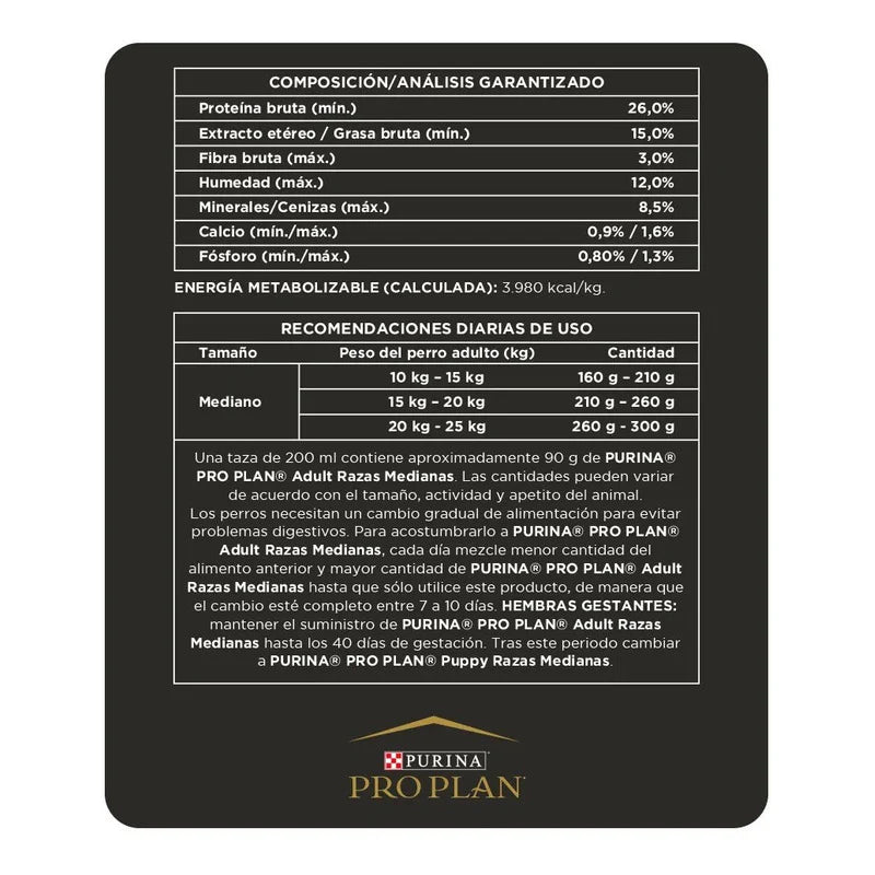 Purina Pro Plan provee nutrición de avanzada que ayuda a los perros de razas grandes a mantenerse fuertes y llenos de vitalidad. A su vez, también ayuda a otras cosas claves en el cuidado de la mascota, tales como reforzar el sistema inmune, fortalecer la microflora intestinal y reforzar la barrera cutánea.Utilizando como ingrediente principal carne fresca de pollo, esta fórmula ofrece, a través de croquetas más grandes, una nutrición con alto contenido de proteínas (26%) de calidad y menos calorías provenientes de la grasa (12%).